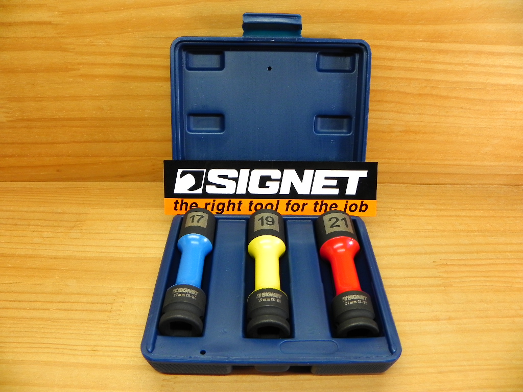 - シグネット 1/2(12.7)sq ホイール ナット レンチ 薄肉タイヤ交換用 ソケットセット3本組 17.19.21mm *SIGNET 23395