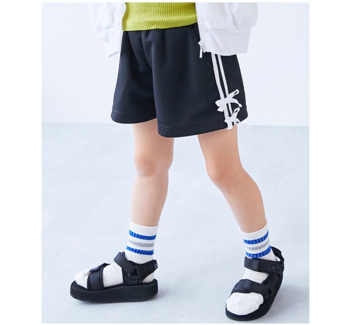 > 新品 未開封 devirock ハーフパンツ ショートパンツ 短パン リボン付き サイドラインショートパンツ 子供服 キッズ ボトムス 25ss 140 黒