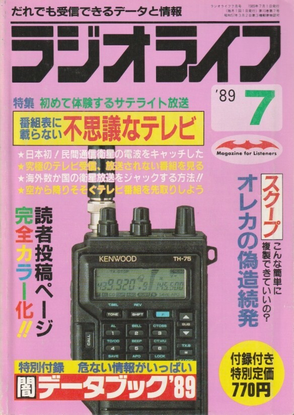 - ラジオライフ 1989年07月号/FM山形/日本航空学園/IC-2ST/番組表に載らない不思議なテレビ/非合法無線ウラの裏/TH-75/AR900/オレカ偽造事件