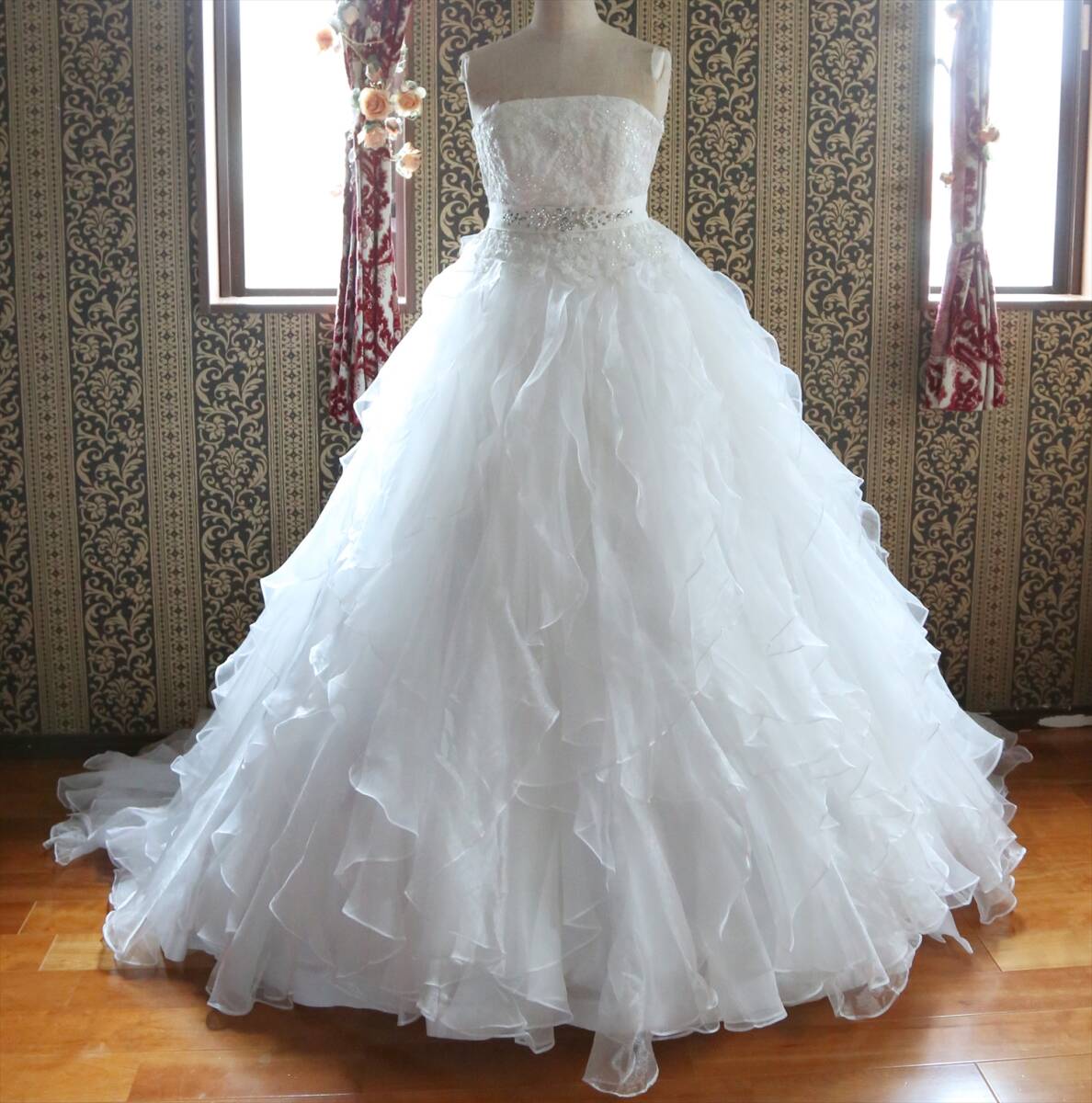 - オーガンジーフリルの高級ウエディングドレス7号9号S~Mサイズ編上げ調節可能