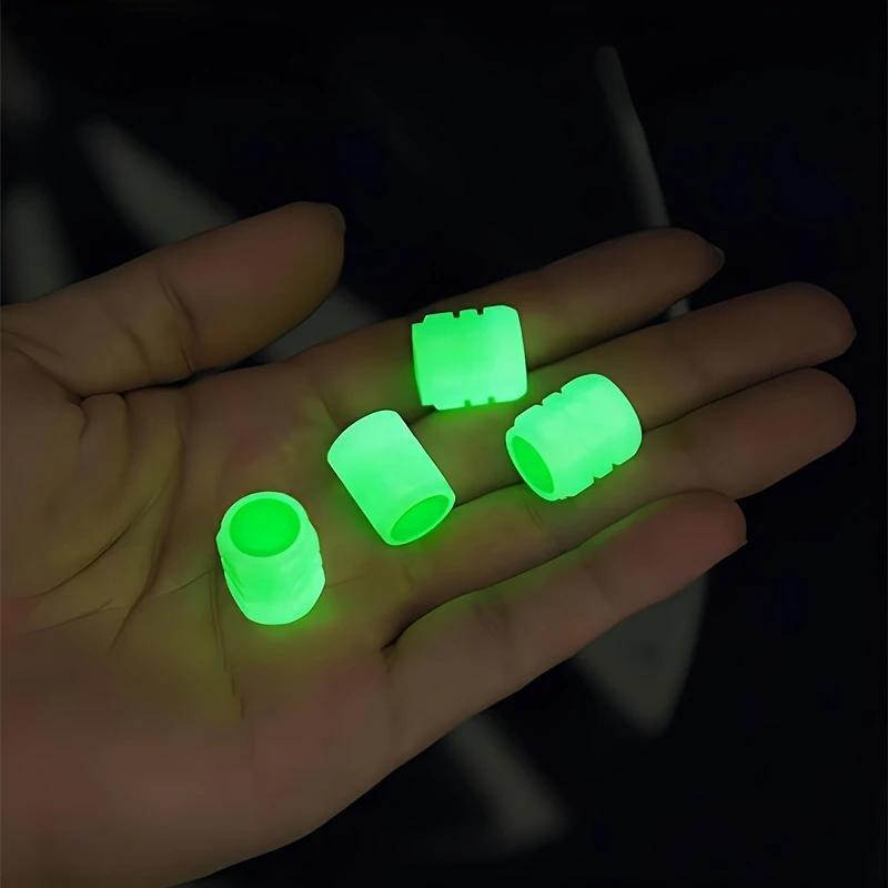 - ☆暗闇で光るタイヤバルブキャップ 蓄光タイヤバルブキャップカバー 蛍光/グロー ネオン ※4個 グリーン