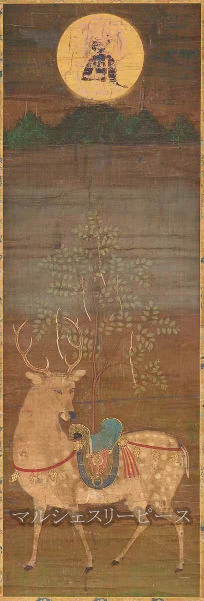 - 春日鹿 曼荼羅図 仏画 仏図 掛け軸 画芯 未表装