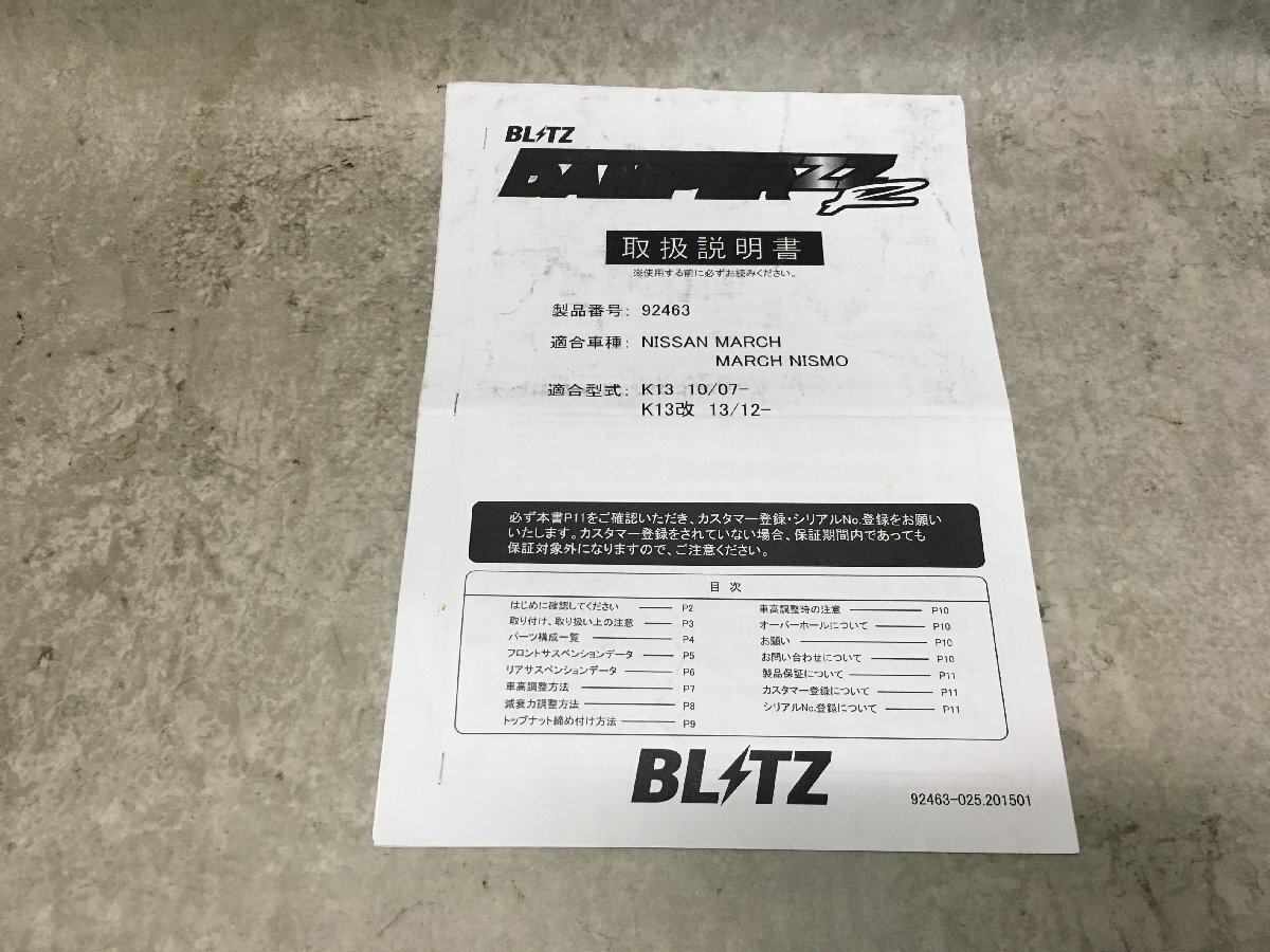 - K13 K13改 マーチ ニスモ ブリッツ BLITZ DAMPER ZZ-R 取扱説明書