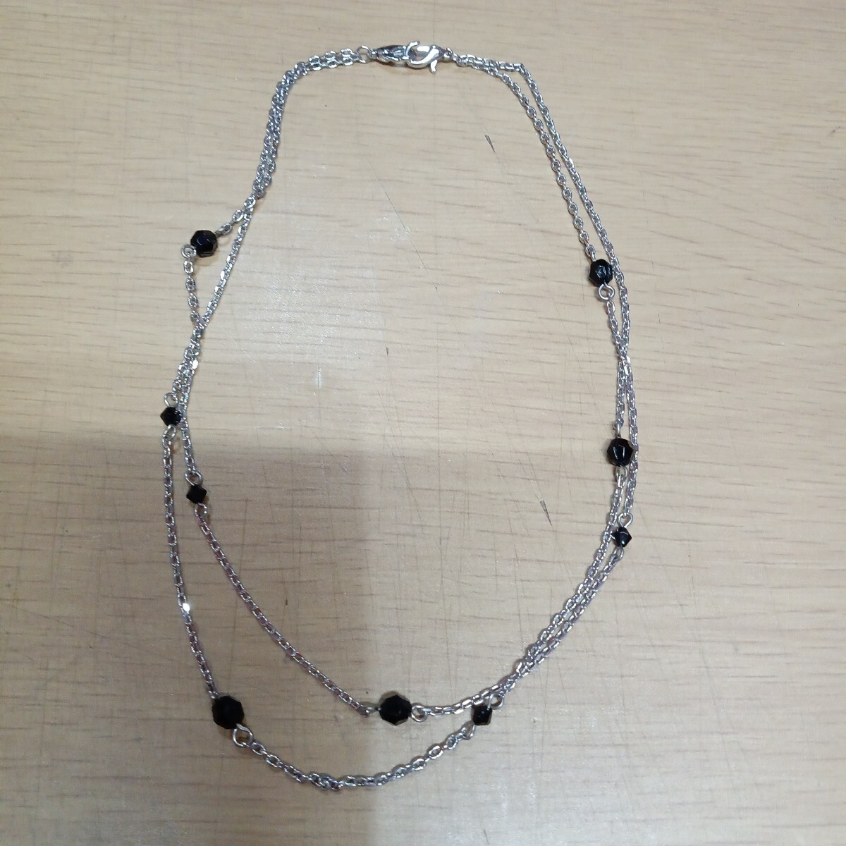 - レディース 2連チェーン ネックレス ブラックストーン 長さ40cm used