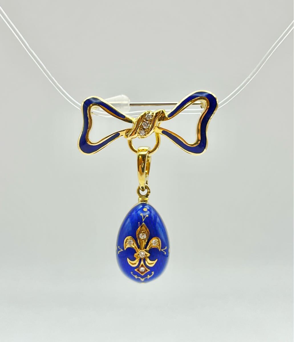 - 【極美品】ファベルジェ イースター エッグチャーム ブルー ブローチ K18 18金 イエローゴールド