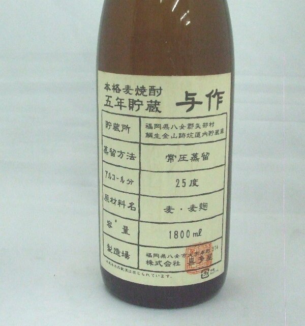 - 与作 麦焼酎 20年長期貯蔵 25度1800ml 喜多屋