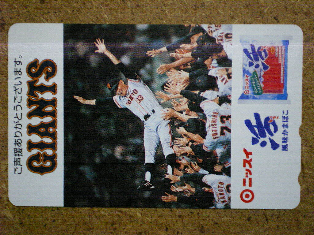 - yakyna176・長嶋茂雄 ジャイアンツ 胴上げ ニッスイ かまぼこ 未使用 50度数 テレカ