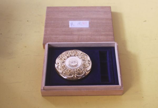 - 桐箱入り 麒麟朱肉 菊の御紋入り ゴールドの朱肉入れ 印泥(いんでい)朱色/26N6.19-77