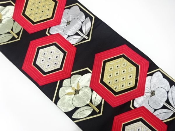 > ys7426185; 宗sou 亀甲に椿模様織り出し袋帯(着用可)【アンティーク】【着】