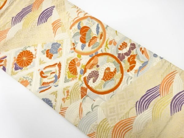 > ys7426229; 宗sou 切りばめ風 丸紋に花・鳳凰模様織り出し袋帯(材料)【アンティーク】【着】