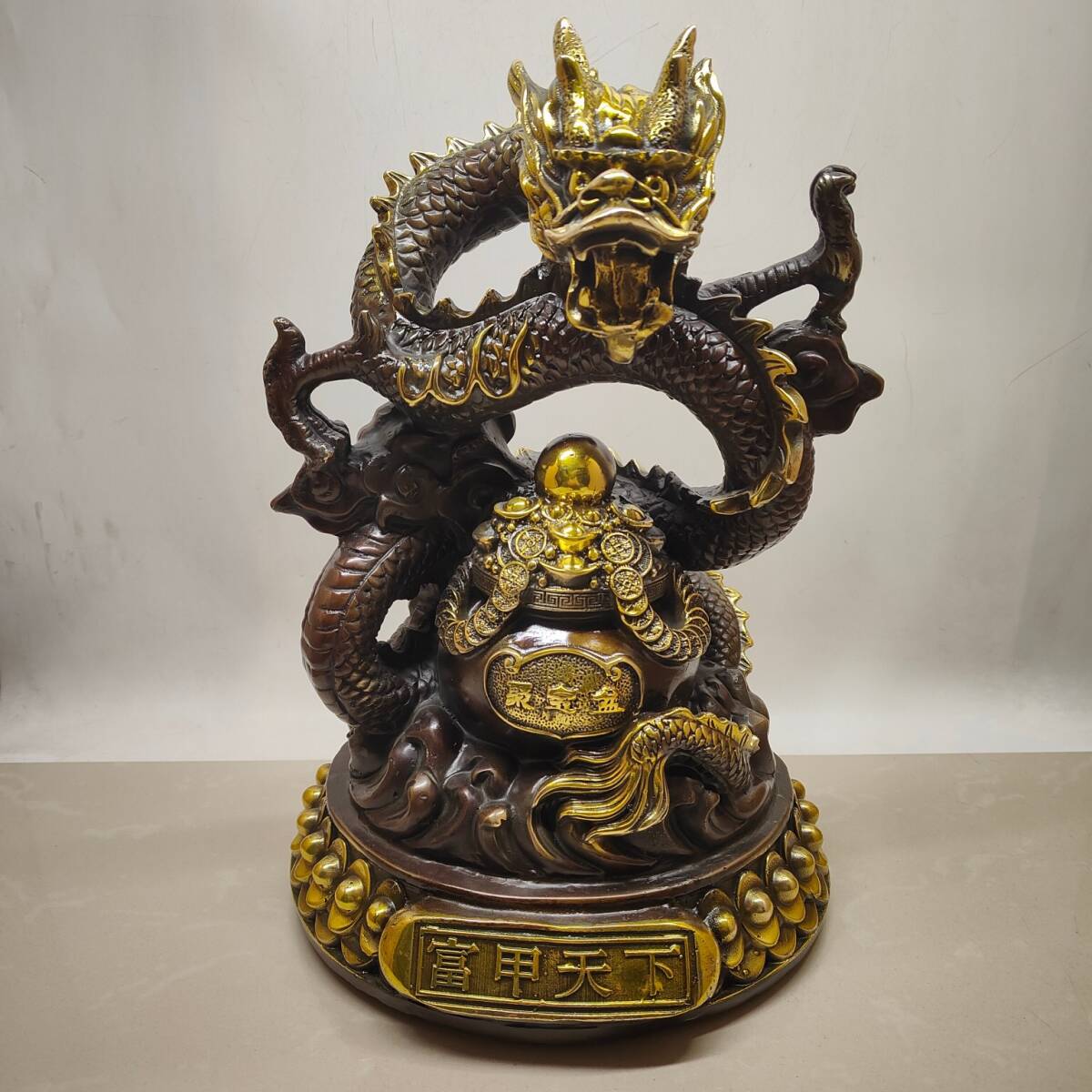 - 蔵友旧蔵出 黄銅製 塗金 富甲天下 盤龍聚寶盆 希少珍品 貴重品 置物 古賞物 中国古玩 中国古美術品