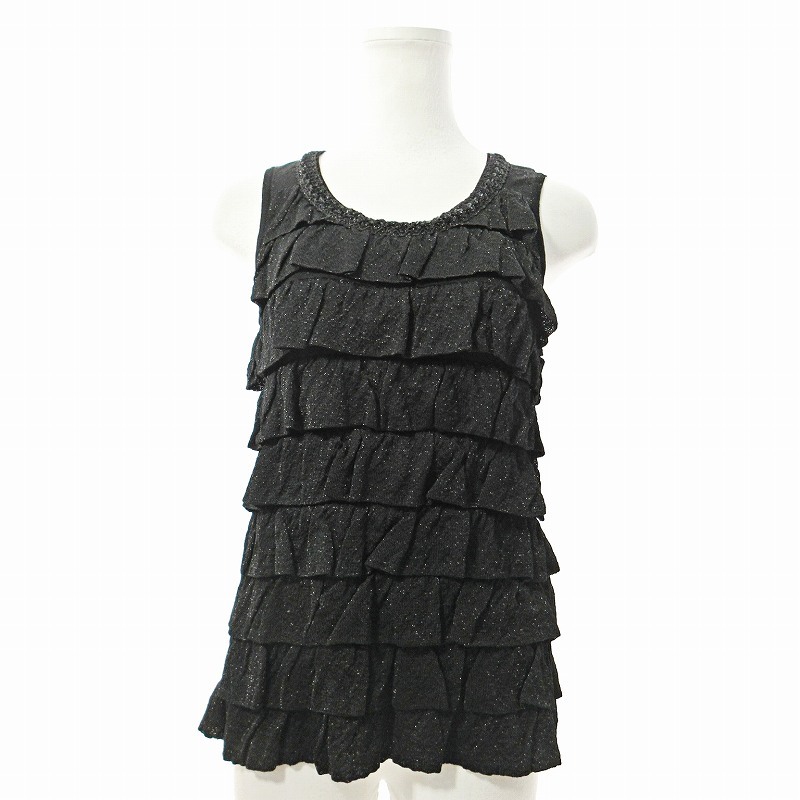 > 未使用品 エムプルミエ ブラック M-Premier BLACK タグ付き ノースリーブ フリル カットソー 36 黒 ブラック 0618 レディース