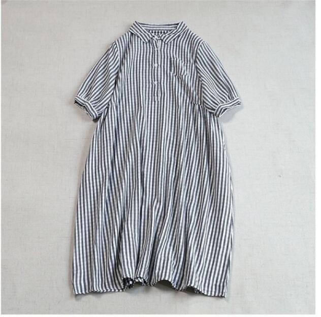 - 新入荷上質ワンピース ダブルガーゼ オシャレ Aライン 大人可愛 ゆったり チュニック フリーサイズ ナチュラル 綿100% ストライプ柄