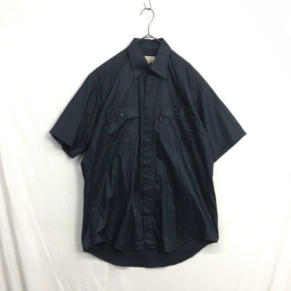 - HZ9573★TRUSSARDI : 比翼ボタン シワ加工 半袖シャツ★46★ネイビー トラサルディ