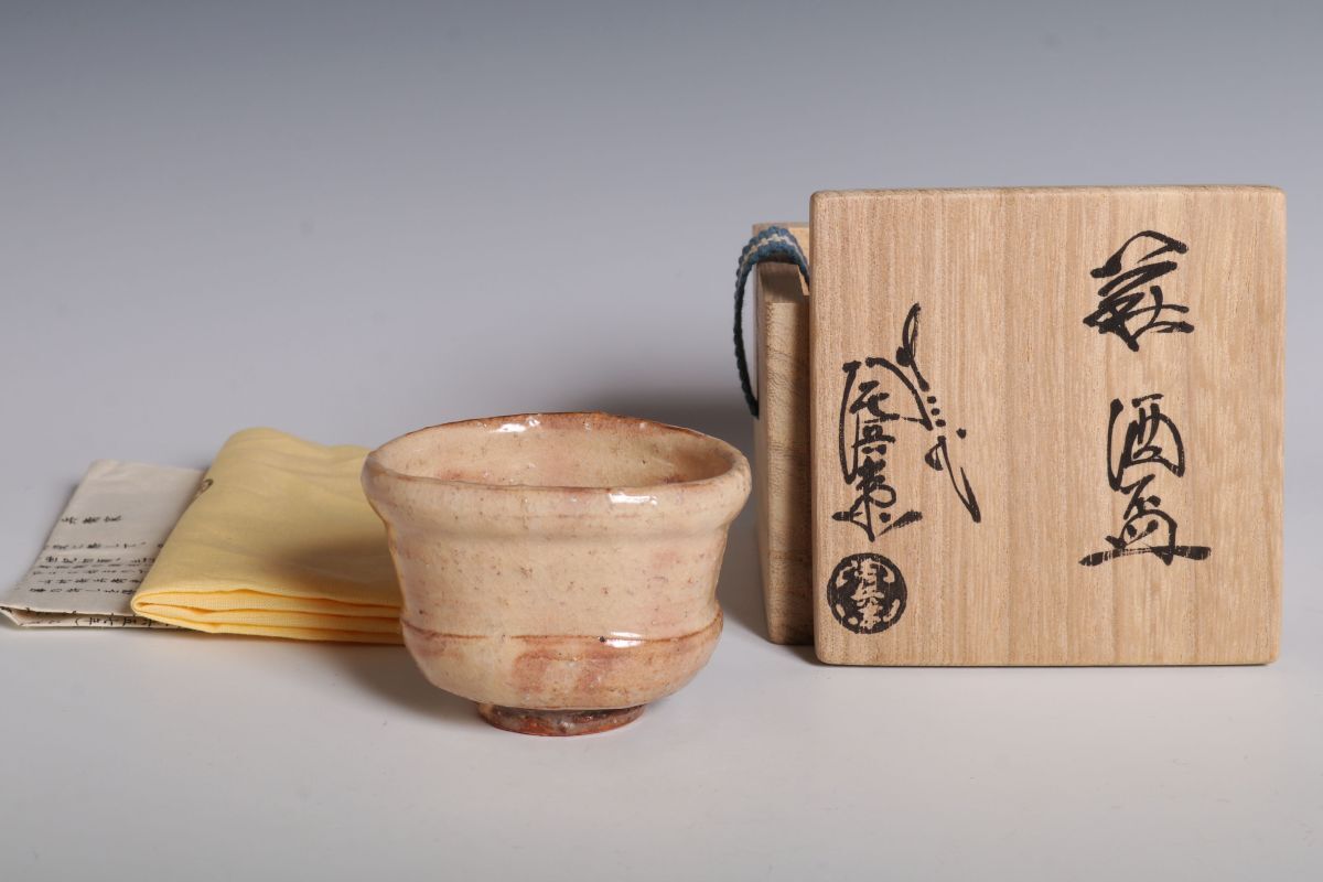 - 9380 萩焼 十三代 田原陶兵衛 萩酒盃(共木箱) 真作 ぐい呑 杯 盃 山口県無形文化財 十二代田原陶兵衛の長男