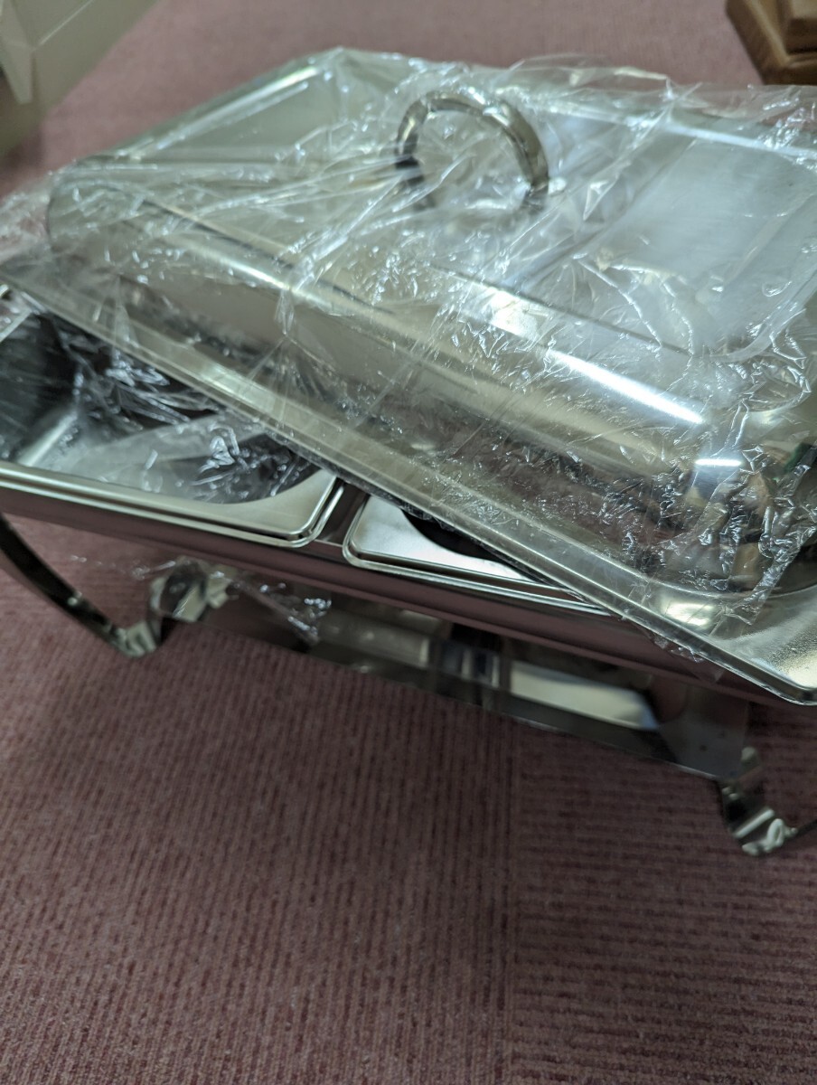 > チェーフィングディッシュ 7.2㍑と白セラミック鍋1枚 業務用 イベント レストラン ビュッフェ パーティー 未使用品!!