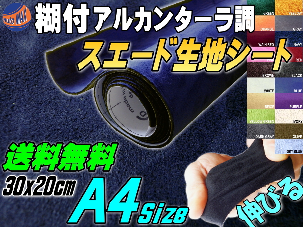 > スエード (A4) 紺 30cm×20cm伸びるアルカンターラ調スウェード生地スエードシート裏面糊付きカッティング可 シート内装ドアパネル車 0