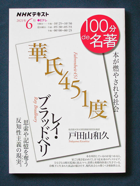 - 100分de名著 「レイ・ブラッドベリ; 『華氏451度』」 ◆戸田山和久(NHK出版)2021年6月