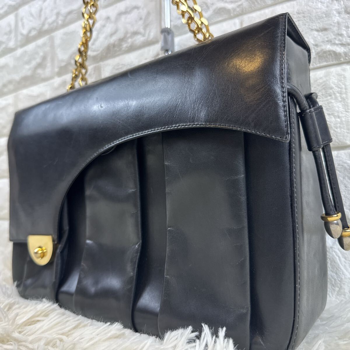 - BALLY バリー ロゴ型押し レザー 本革 チェーン ハンド バッグ トートバッグ 黒
