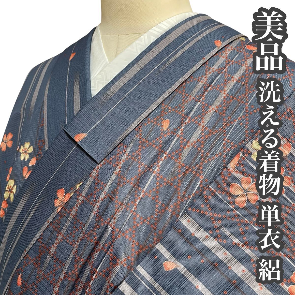 - #H454 美品 洗える着物 単衣 絽 ポリエステル 桜 和服 和装 夏物 着物【wellriver】