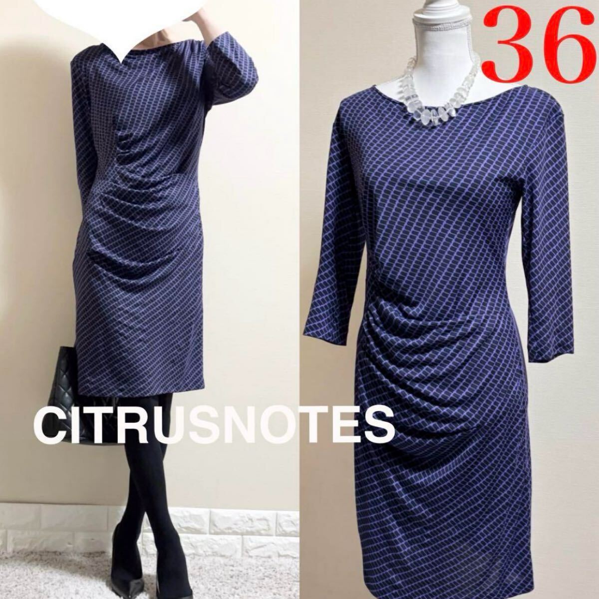 - 極美品!CITRUSNOTES シトラスノーツ 涼しい スタイル美人 ワンピース 36 S 総柄 春夏秋 パープル