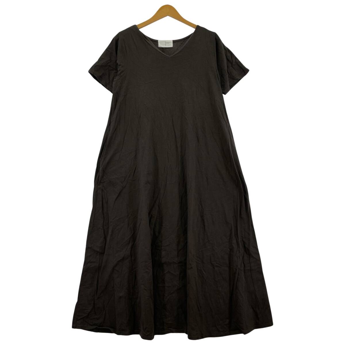 - ANTIQUA アンティカ Vネック 半袖 ロング ワンピース size表記なし/ダークブラウン