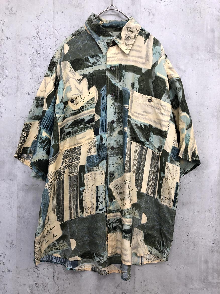 - ゆうパケットOK COCOON コクーン シルク100% 総柄 ポケット 半袖 シャツ sizeM/ミックス ■◆ ☆ ffd0 メンズ