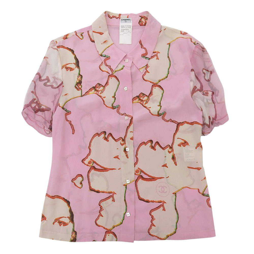 - CHANEL シャネル COCOフェイス 総柄 半袖シャツ トップス レディース シルク ピンク 40 00s ヴィンテージ