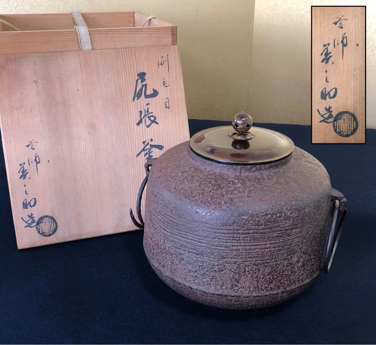 - 《R》茶道具 刷毛目 尻張釜 釜師 和田美之助造 鐶付 共箱 250630D4