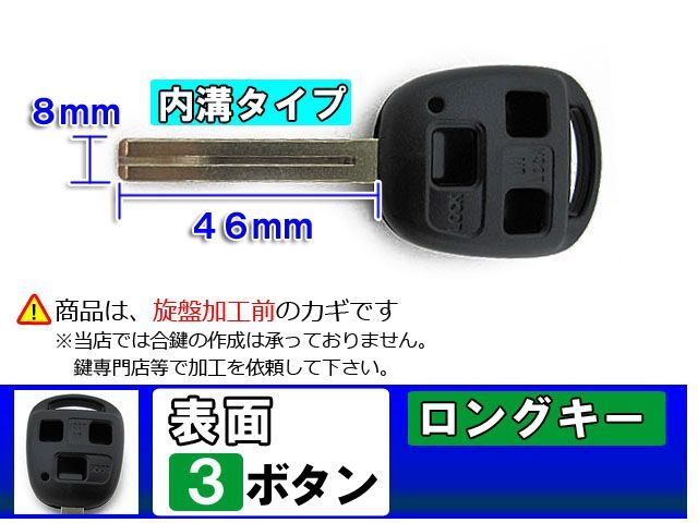 - 【互換品】kc008 (トヨタ車用 /レクサス) キーレス ブランクキー(表面3ボタンtype-1016)(ロングキータイプ)