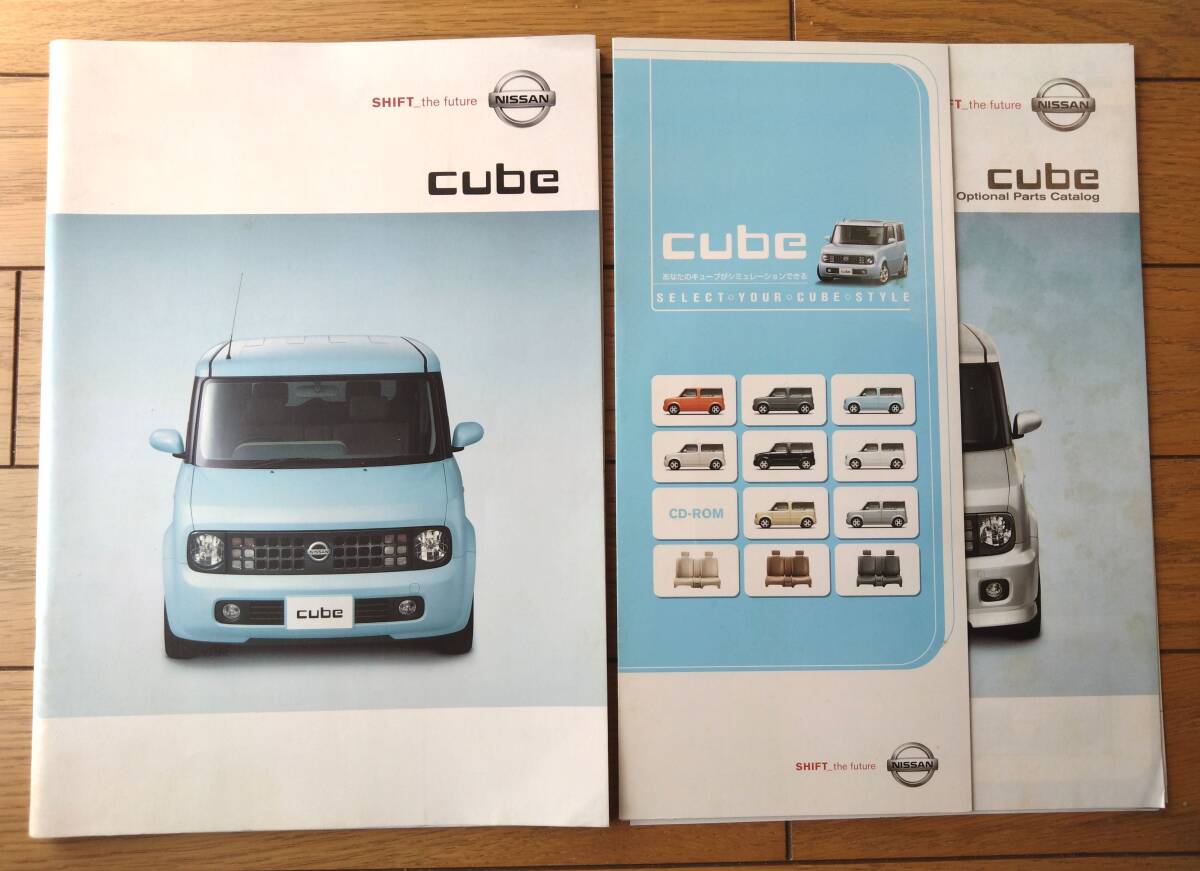 > レトロ【日産キューブ・パンフレット/全32ページ(「ライダー」パンフ・オプションパーツカタログ等付)】日産自動車(平成14年)