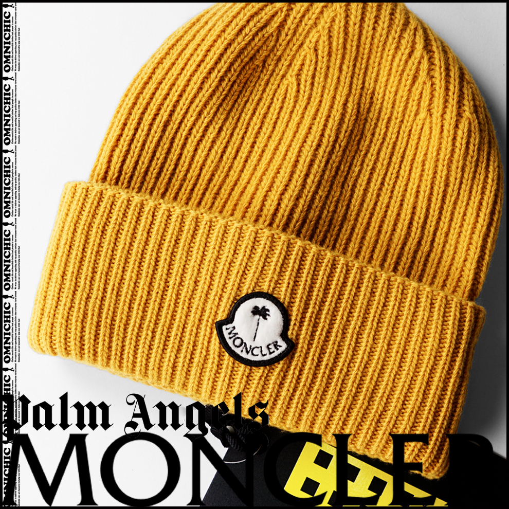 - 23-24AW■安心の国内正規品/新品47,300円【MONCLER GENIUS PALM ANGELS】モンクレールパームエンジェルスロゴウールリブニットキャップ/黄