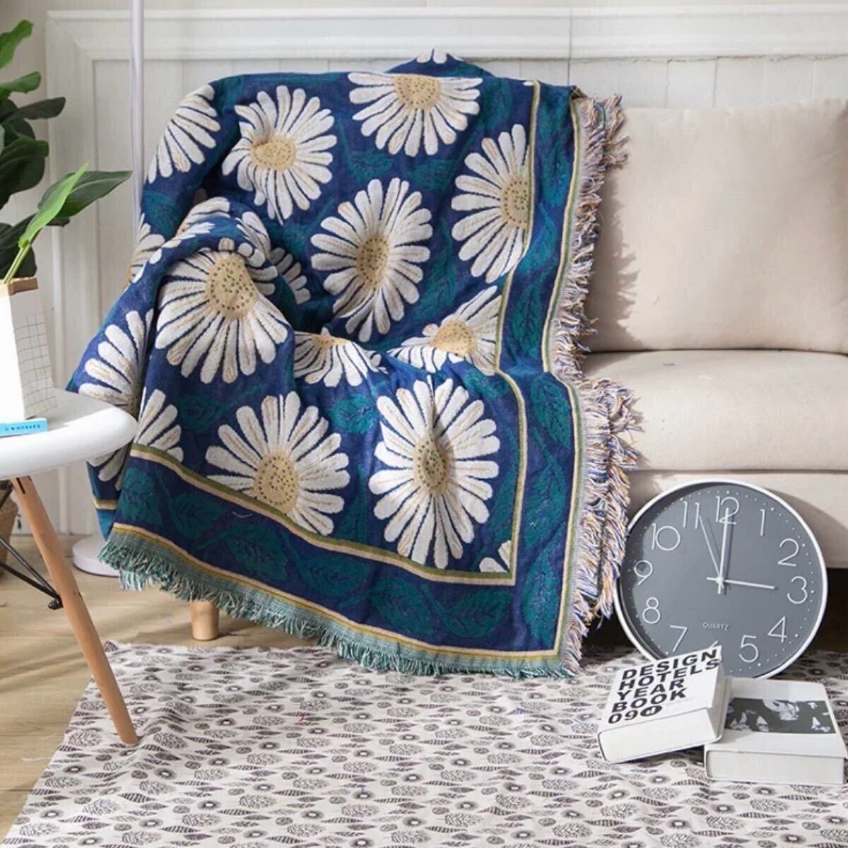 - M41★マルチカバー ソファカバー 保護カバー ラグ ブランケット ひざ掛け デイジー柄 リバーシブル 大判 オールシーズン インテリア 韓国