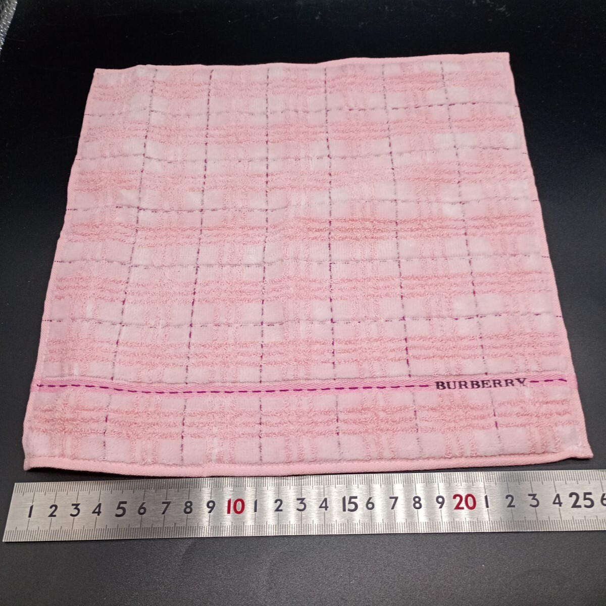 - BURBERRY バーバリー タオルハンカチ ピンクチェック ロゴ刺繍 no.3021