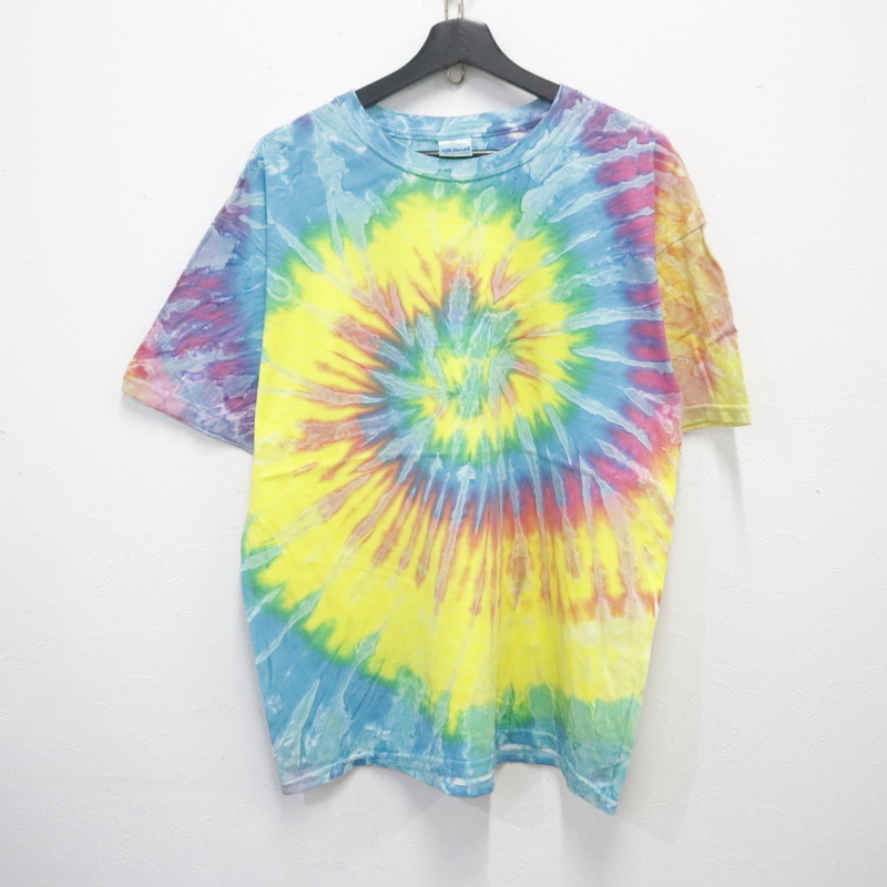 > H652 2000年代製 ギルダン 半袖Tシャツ■00s 表記Lサイズ イエロー タイダイ アメカジ ストリート 古着 古着卸 激安 希少 オールド 90s 80s