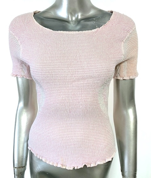 > ☆二点落札で送料無料 A048 A-POC イッセイミヤケ 半袖 デザイントップス サークル模様 ピンク系 ストレッチ レディース 日本製 2 M-L