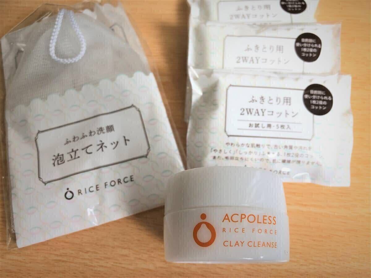 > 未開封【RICE FORCE】アクポレス クレイクレンズ 洗顔料・泡たてネット・コットンセット ライスフォース