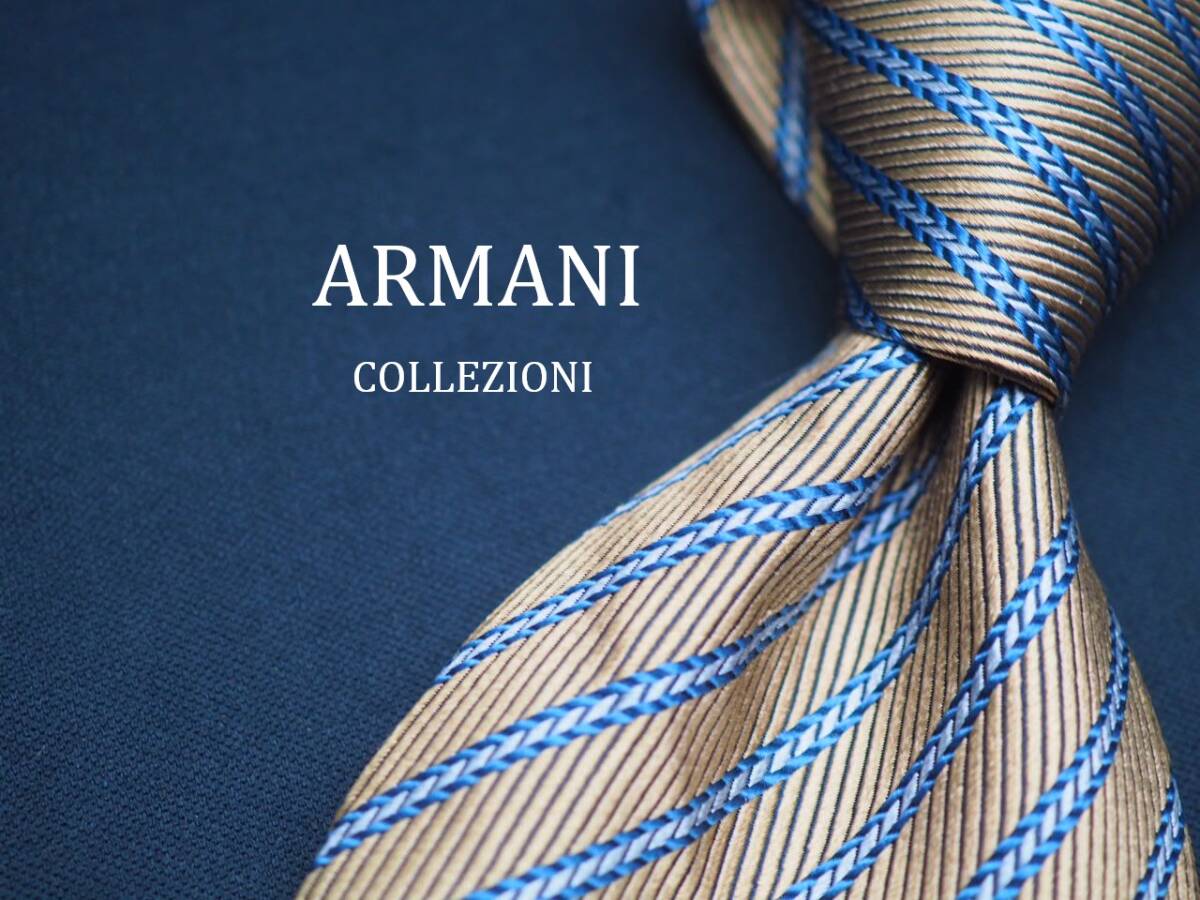 > 美品【ARMANI COLLEZIONI アルマーニ コレッツォーニ】 E2961 シャンパン系 SILK ブランド ネクタイ 古着 良品