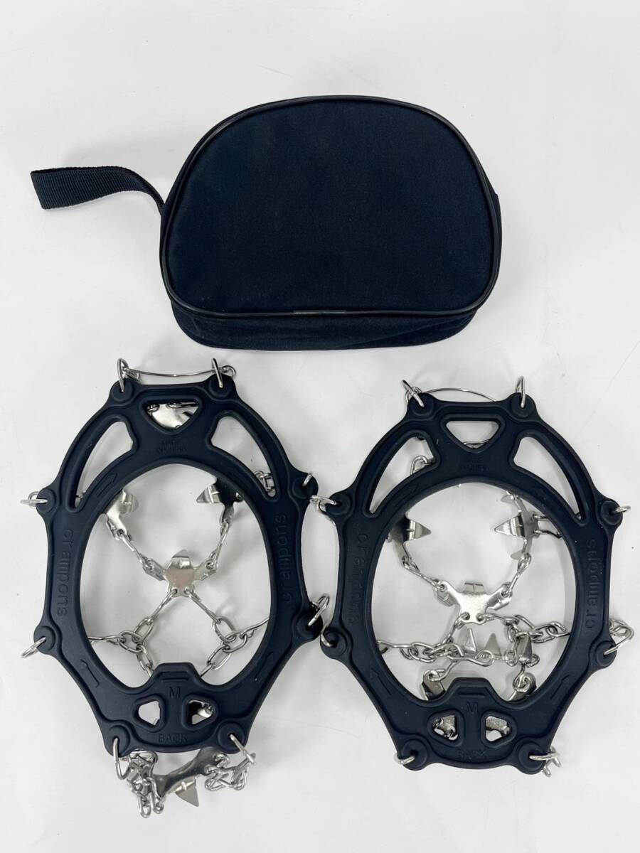 - アイゼン 登山 山登り グッズ 収納ケース付き cr ampons チェーンアイゼン 爪19本 スノースパイク Mサイズ 黒