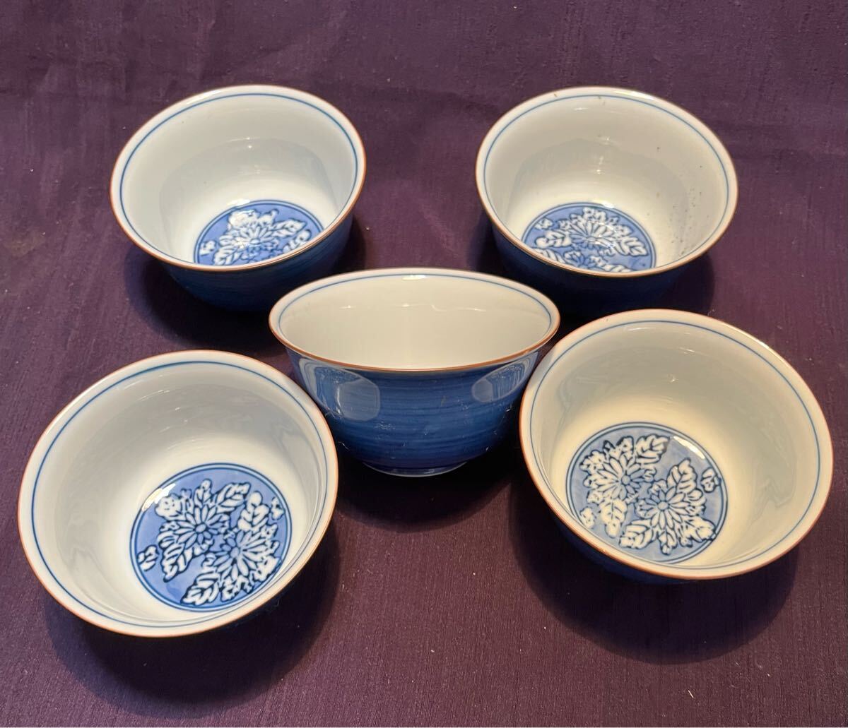 - 有田焼見込み草花文湯呑茶碗五客[7917]