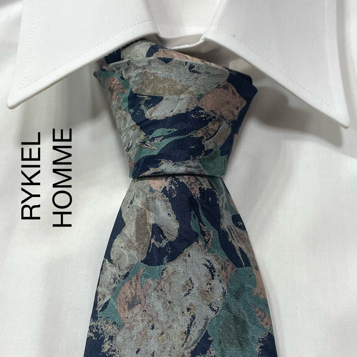 - RYKIEL HOMME リキエルオム アート シルク ネクタイ ネイビー グリーン ブルーグレー ライトオレンジ TG2560