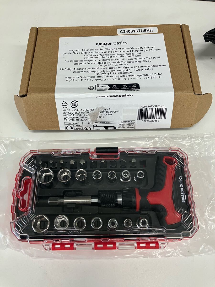 - 0707e0206 Amazonベーシック ラチェットレンチ、ドライバーセット 磁気 Tハンドル 27個
