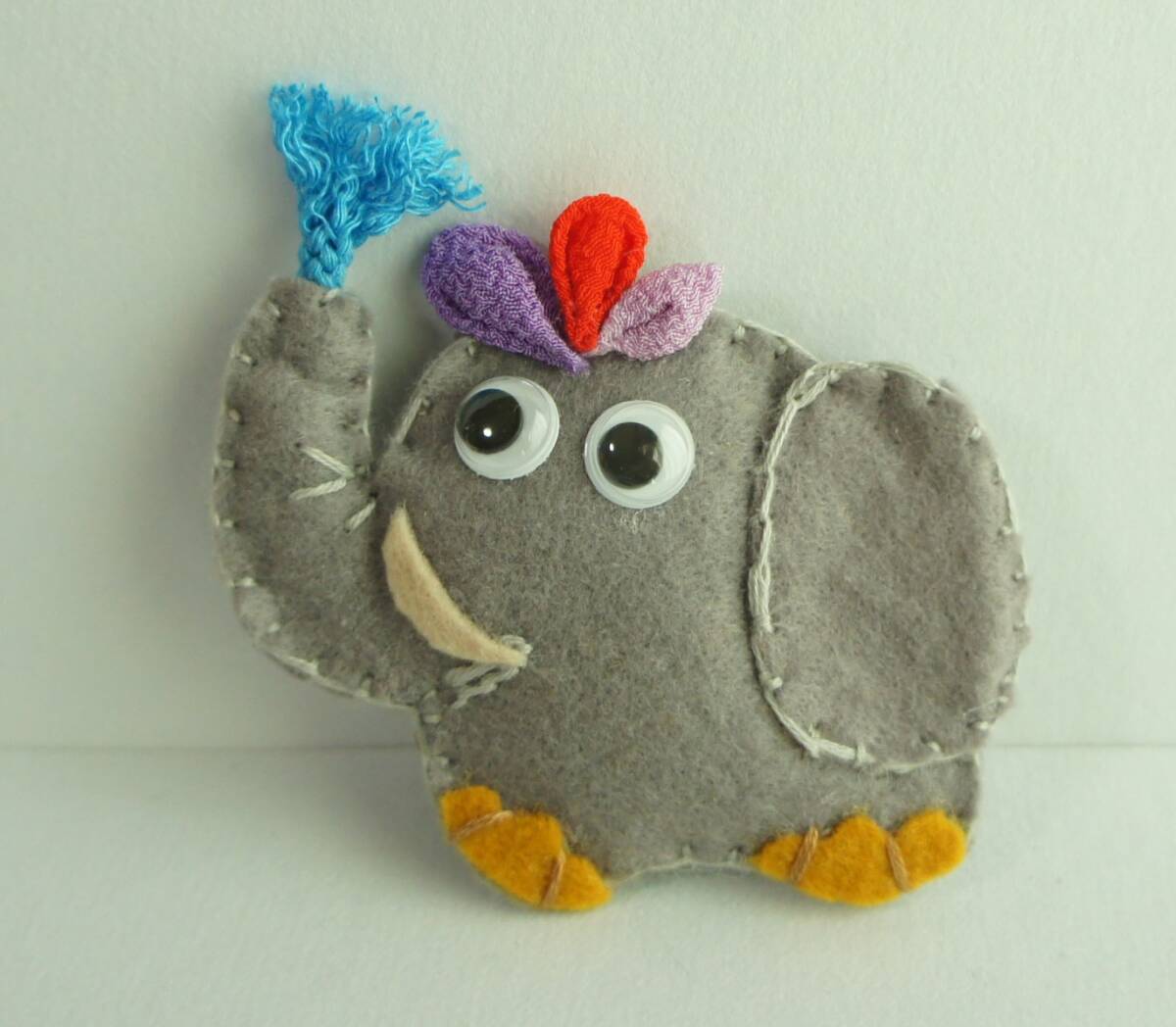 - ♪ ハンドメイド ブローチ ゾウ 象 動眼 綿入り ちりめん