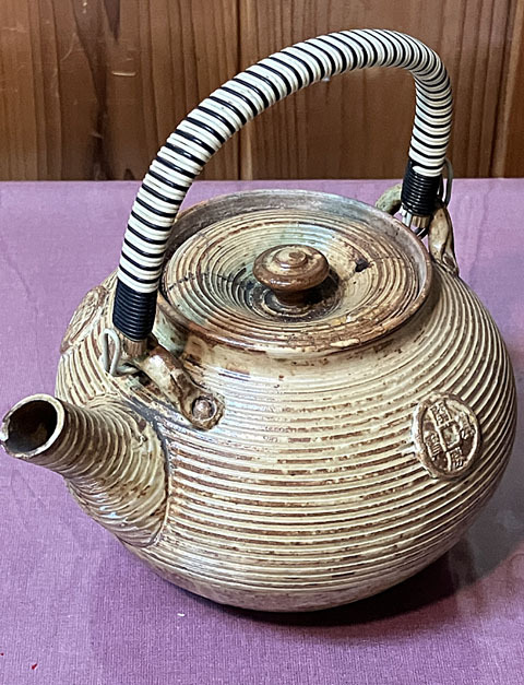 - ★急須 土瓶 陶器★1リットル/銅銭模様★古物/割れ補修あり