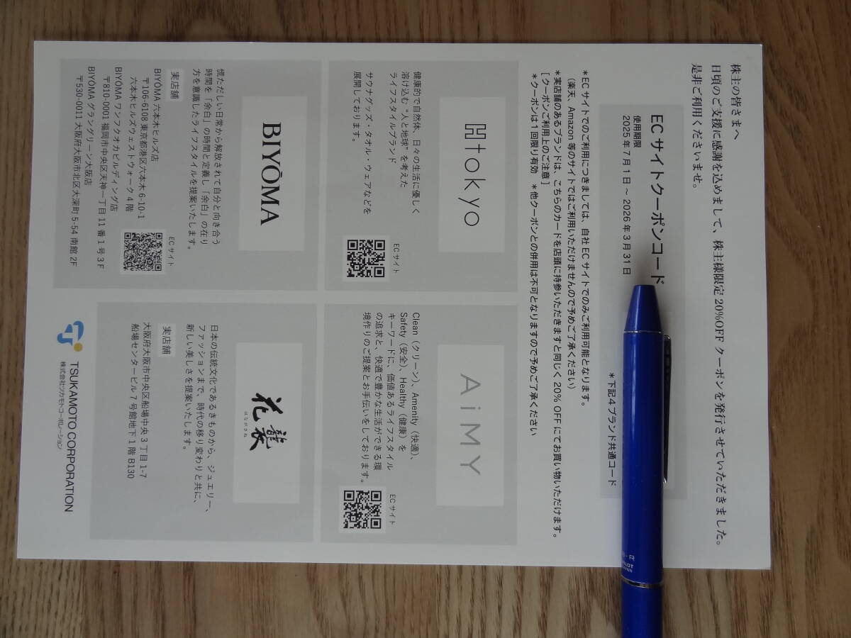 - ツカモトコーポレーション ECサイトクーポン 株主様限定20%OFF 2026年3月31日まで