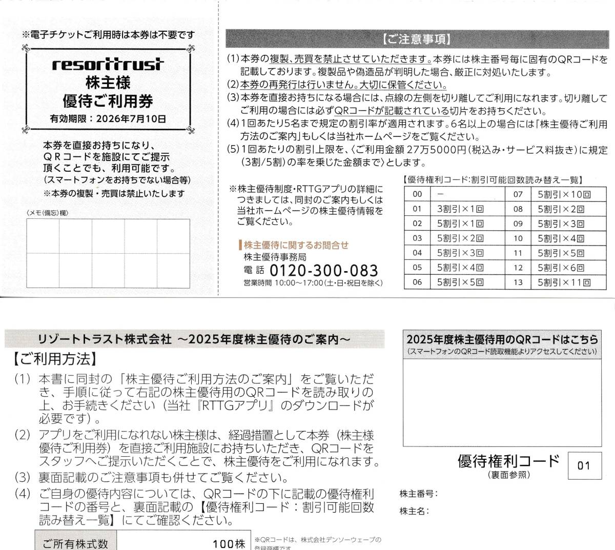 - ★☆送料無料 リゾートトラストの株主優待3割引券☆★