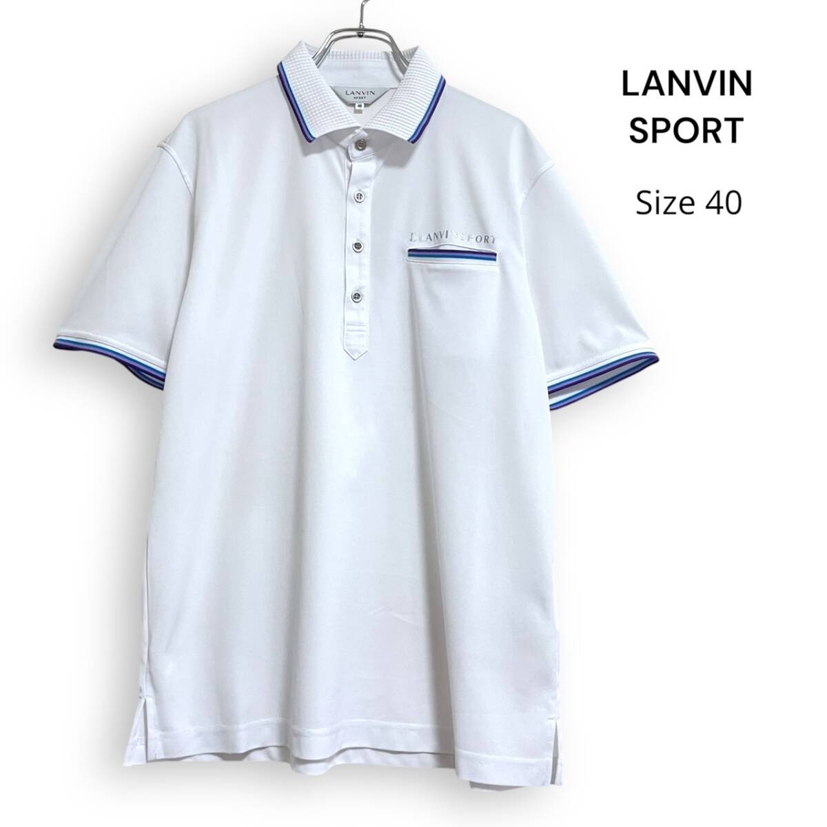 - LANVIN SPORT ランバンスポール 半袖 ポロシャツ 速乾生地 ホワイト 40