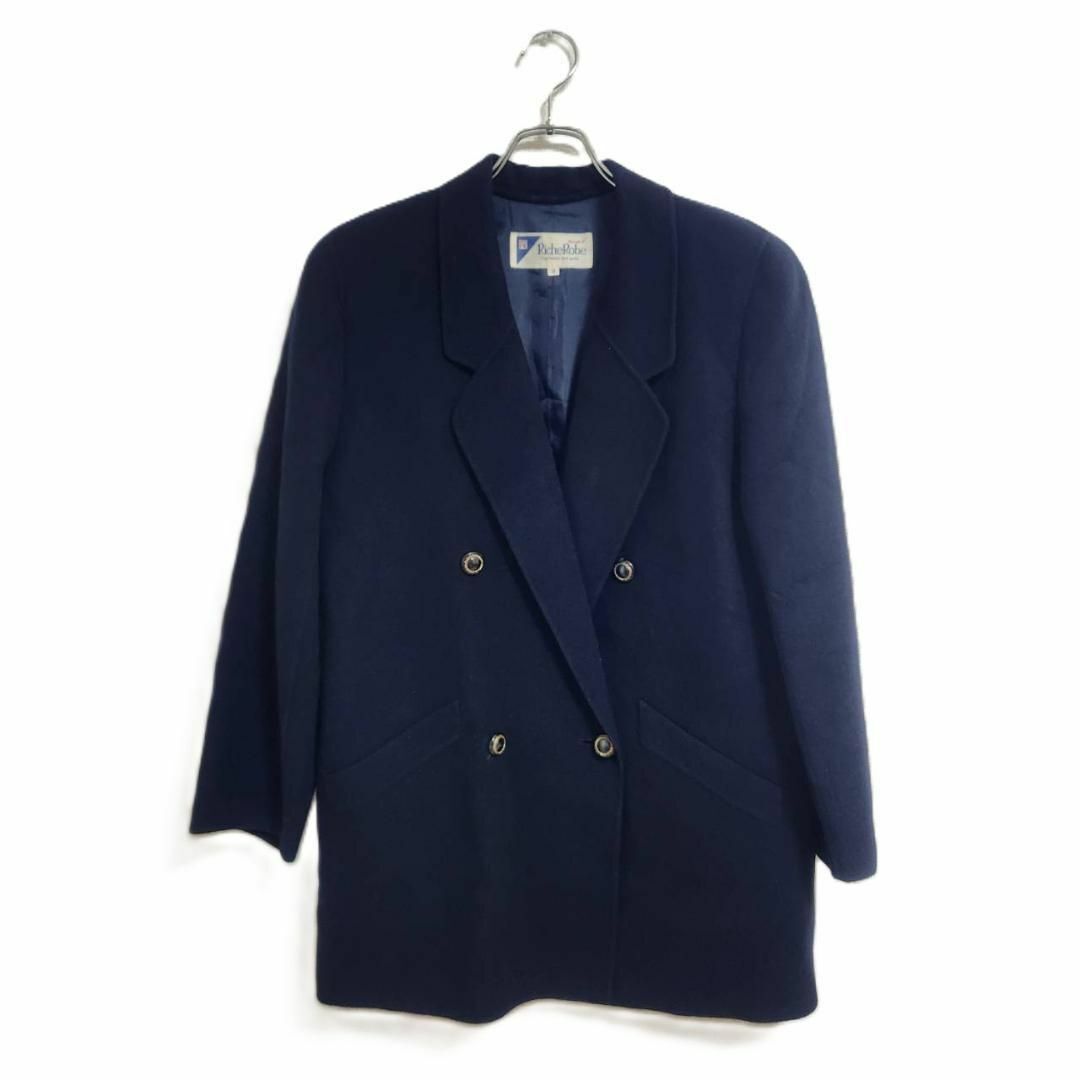- ロングコート ネイビー 9号 M カシミヤ混 ダブルボタン 防寒 秋冬 おでかけ