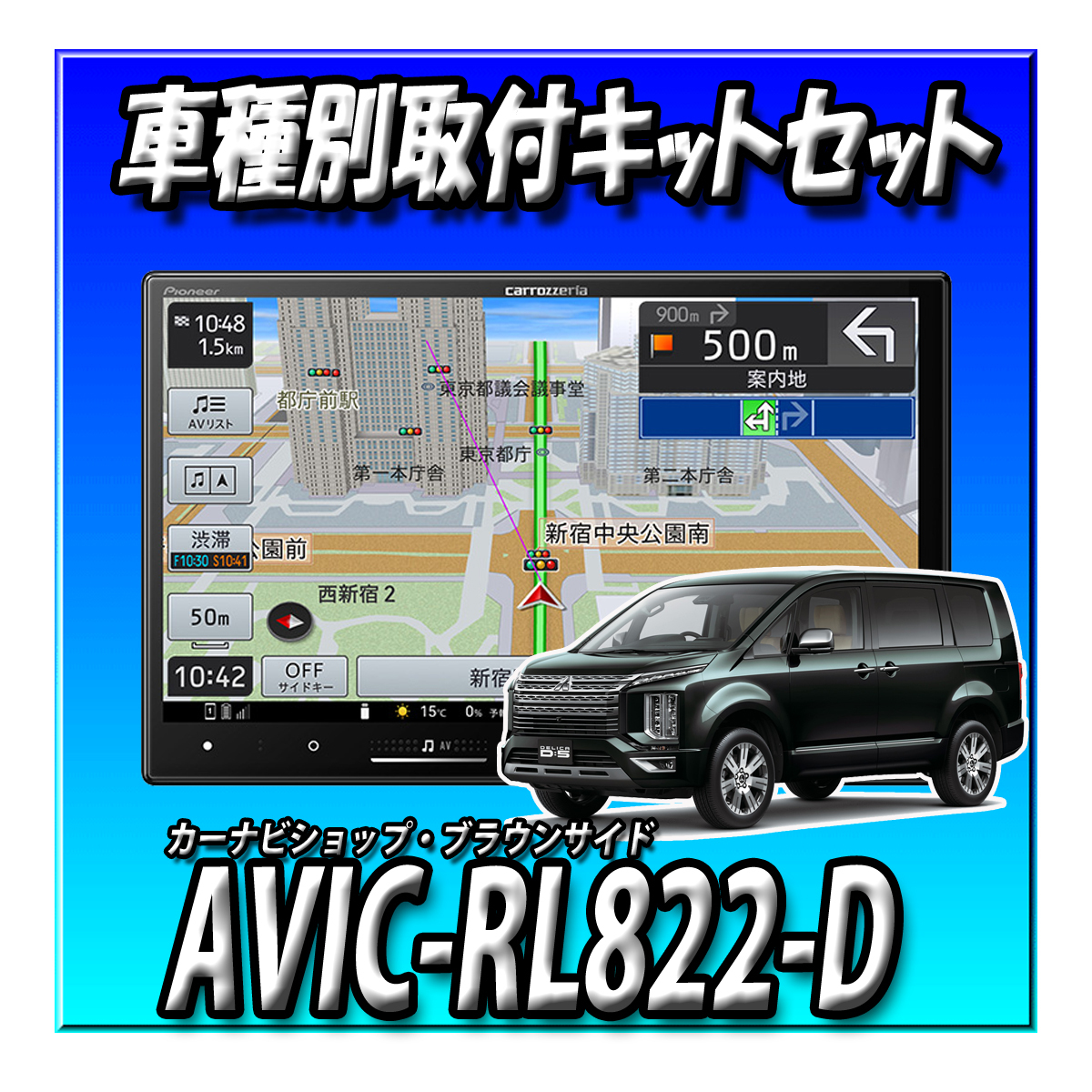 > 【3点セット販売・キャンセラー付】 AVIC-RL822-D(AVIC-RL722の廉価版) +デリカD5(H20/5~R2/12)用取付キット 8インチ 楽ナビ2025年