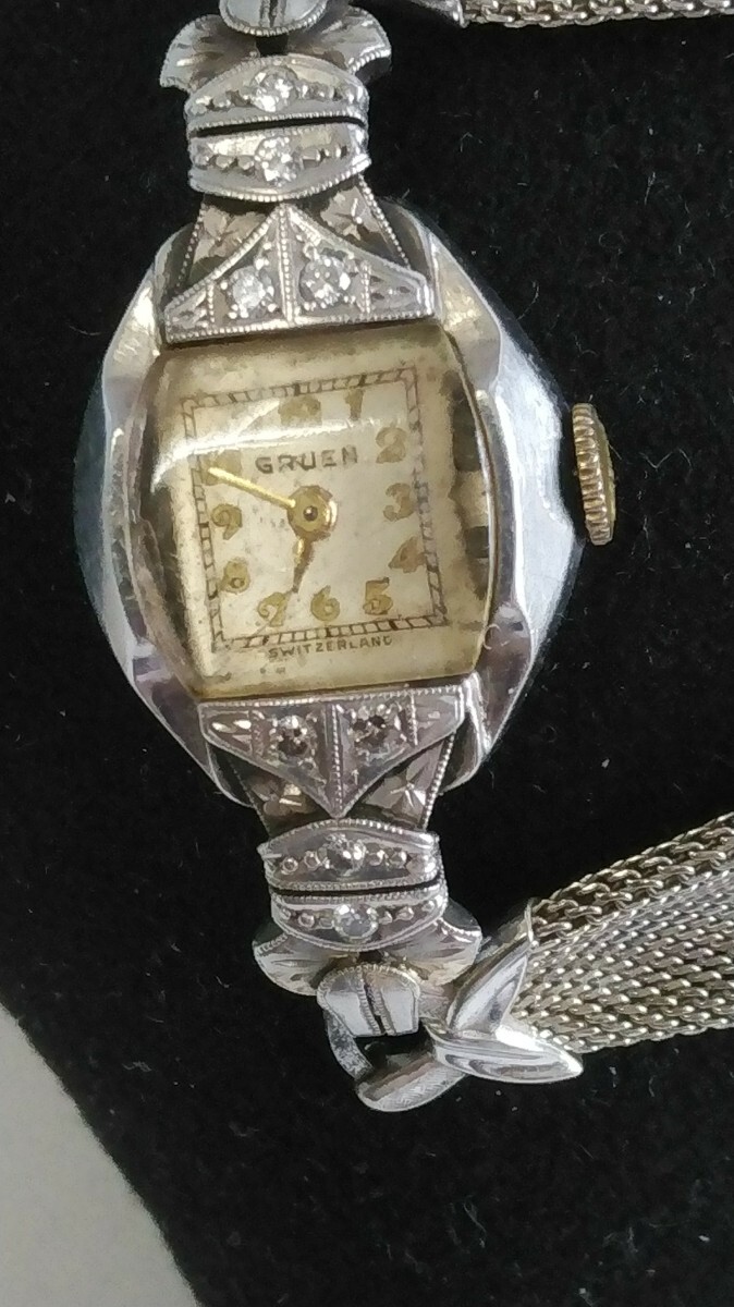 - GRUEN グリュエン PTプラチナ ダイヤモンド8P レディース手巻 腕時計 ビンテージ